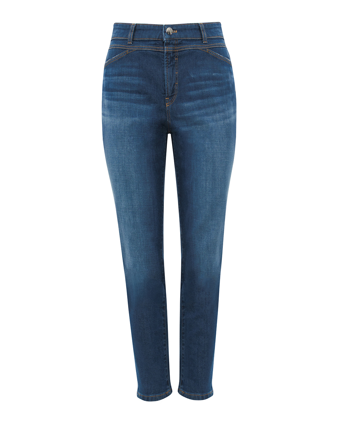 Эти джинсы — квинтэссенция современного стиля и функциональности, идеально сочетающие лаконичный крой с эстетикой повседневного шика. Изготовленные из плотного денима насыщенного синего оттенка, они подчеркивают силуэт, обеспечивая при этом комфорт и долговечность. Классическая средняя посадка создаёт гармоничный баланс, акцентируя линию талии и удлиняя ноги. Детали, выполненные в виде двойной строчки, добавляют текстурный контраст и подчёркивают высокое качество исполнения. Легкая потертость на бедрах и коленях придаёт джинсам изысканную небрежность, сохраняя при этом их элегантность. Завершает образ традиционная конфигурация карманов, которая сохраняет практичность и стиль. Эти джинсы станут идеальной базой для создания как расслабленных, так и более структурированных образов.