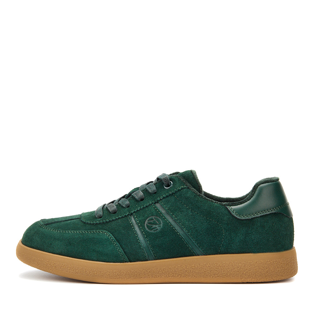 Женские демисезонные кеды из бархатистого спилка с вставками из кожи из спилка. Модель насыщенного зеленого цвета. Надёжная резиновая подошва с амортизацией и антискользящим эффектом обеспечивает комфорт и безопасность. Лёгкие и удобные, подходят для повседневного образа в стиле casual и спорт-шик. Стелька и подкладка из ворсина гарантируют комфорт в течение дня.