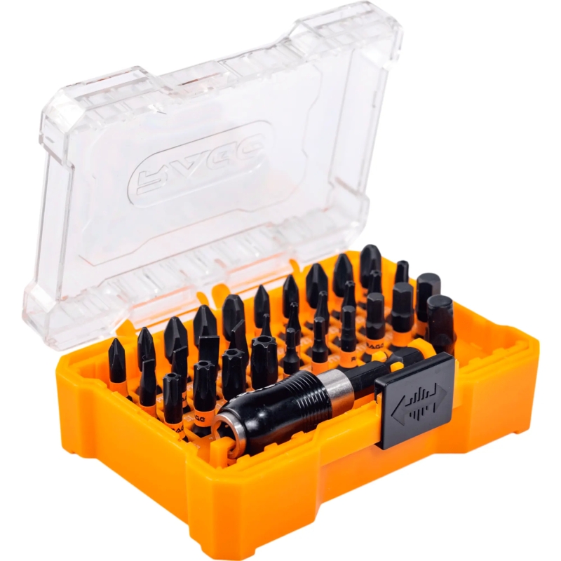| Состав набора (количество и тип) | PH0 х 25 мм - 1 шт; PH1 х 25 мм - 1 шт; PH2 х 25 мм - 2 шт; PH3 х 25 мм - 1 шт; PZ0 х 25 мм - 1 шт; PZ1 х 25 мм - 1 шт; PZ2 х 25 мм - 2 шт; PZ3 х 25 мм - 1 шт; SL3 х 25 мм - 1 шт; SL4 х 25 мм - 1 шт; SL5 х 25 мм - 1 шт; SL6 х 25 мм - 1 шт; HEX2 х 25 мм - 1 шт; HEX2,5 х 25 мм - 1 шт; HEX3 х 25 мм - 1 шт; HEX4 х 25 мм - 1 шт; HEX5 х 25 мм - 1 шт; HEX6 х 25 мм - 1 шт; T6 х 25 мм - 1 шт; TT7 х 25 мм - 1 шт; TT8 х 25 мм - 1 шт; TT10 х 25 мм - 1 шт; TT15 х 25 мм - 1 шт; TT20 х 25 мм - 1 шт; TT25 х 25 мм - 1 шт; TT27 х 25 мм - 1 шт; TT30 х 25 мм - 1 шт; TT40 х 25 мм - 1 шт; |