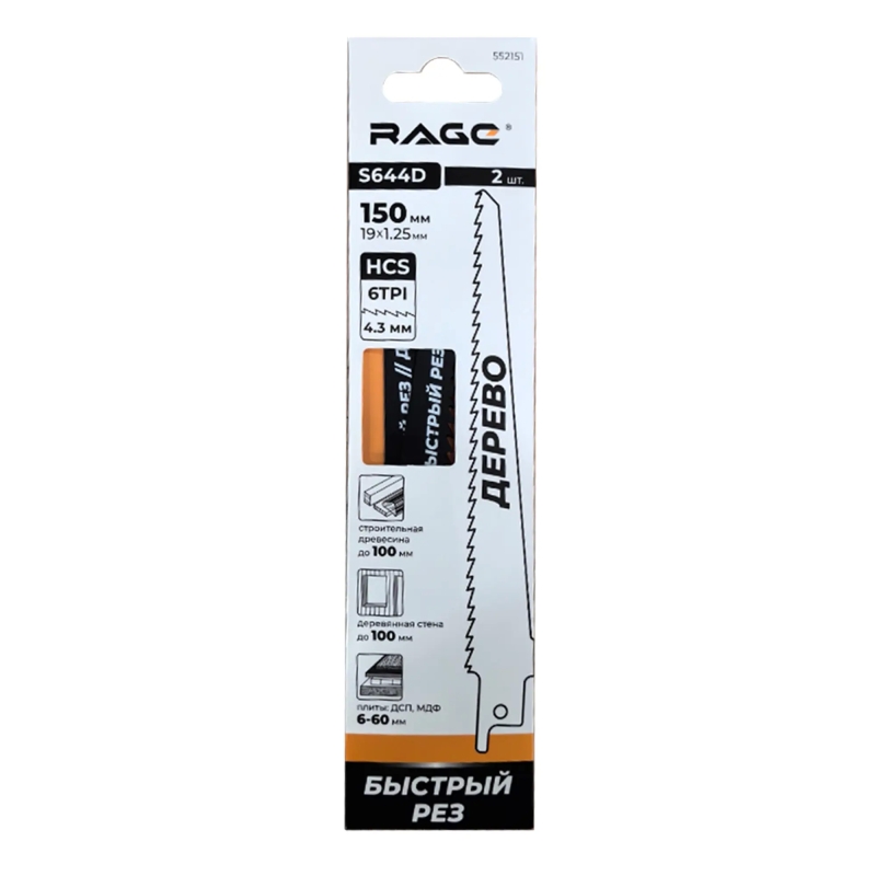 Полотно для сабельной пилы по дереву Rage by Vira S644D 150 мм 2 шт.