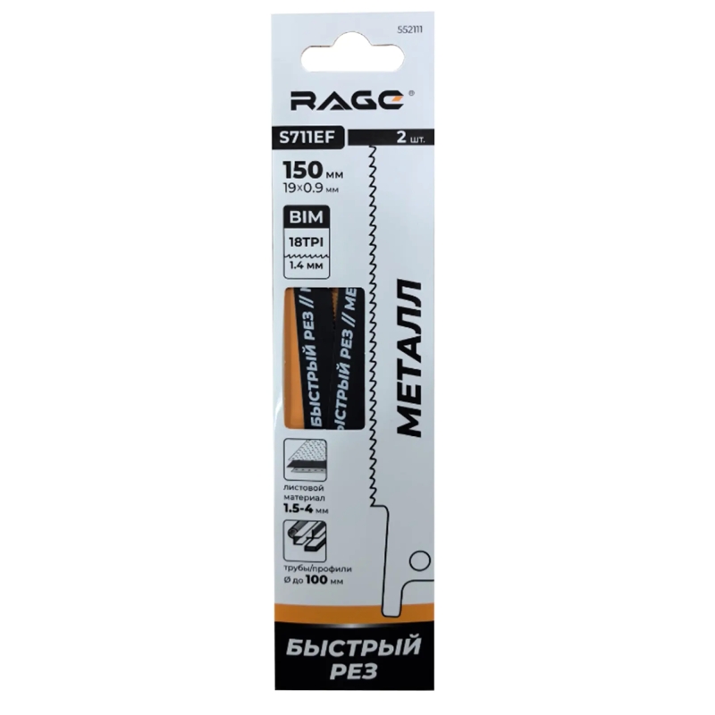 Полотно для сабельной пилы по металлу Rage by Vira S711EF 150 мм 2 шт.