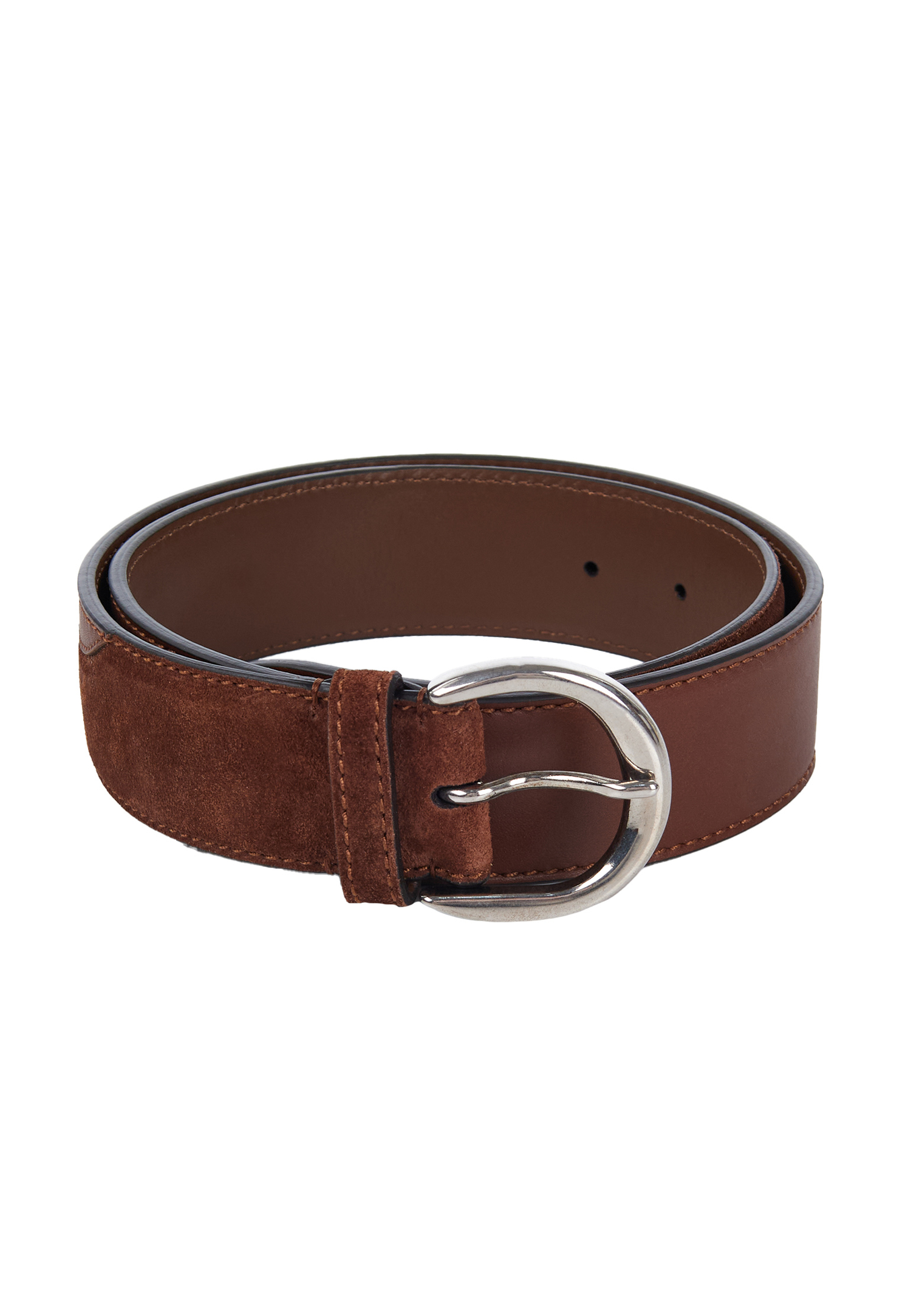 Ремень Ermanno Scervino в оттенке трюфеля изготовлен из благородной бархатистой замши. Этот материал придаёт ему мягкость и роскошь, обеспечивая комфорт при носке и выделяясь благодаря своей тактильной текстуре. Особое очарование в дизайн вносят декоративные элементы из гладкой кожи, которые создают интересный контраст и добавляют изделию уникальности и стиля. Широкая модель одинаково хорошо смотрится как на бёдрах, так и на талии. Аксессуар способен выгодно подчеркнуть фигуру, расставляя акценты и создавая гармоничные образы для различных случаев — от повседневного офиса до вечернего выхода.