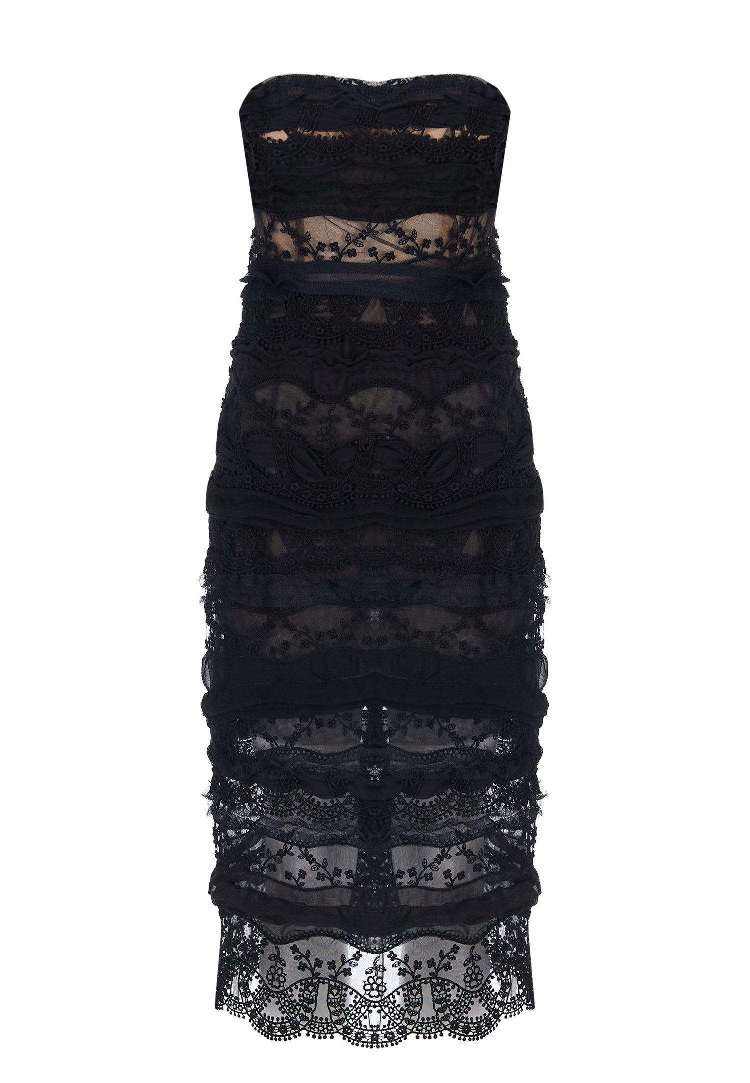 Это платье-бюстье – идеальное воплощение высокого искусства портновского дела, соединяющее в себе женскую утонченность и креативный подход к деталям. Основой служит классическое кружево макраме, создающее изысканный вид, дополненное нежными жоржетовыми полосами, которые искусно драпируются, аккуратно располагаясь вдоль линий тела. Платье подчеркивает фигуру, искусно обнимая каждый изгиб. Асимметричные оборки из жоржета не только способствуют подвижности изделия, но и добавляют элемент игривости. Использование ручной работы в процессе изготовления гарантирует превосходное качество, а художественная обработка сложных деталей делает изделие уникальным.