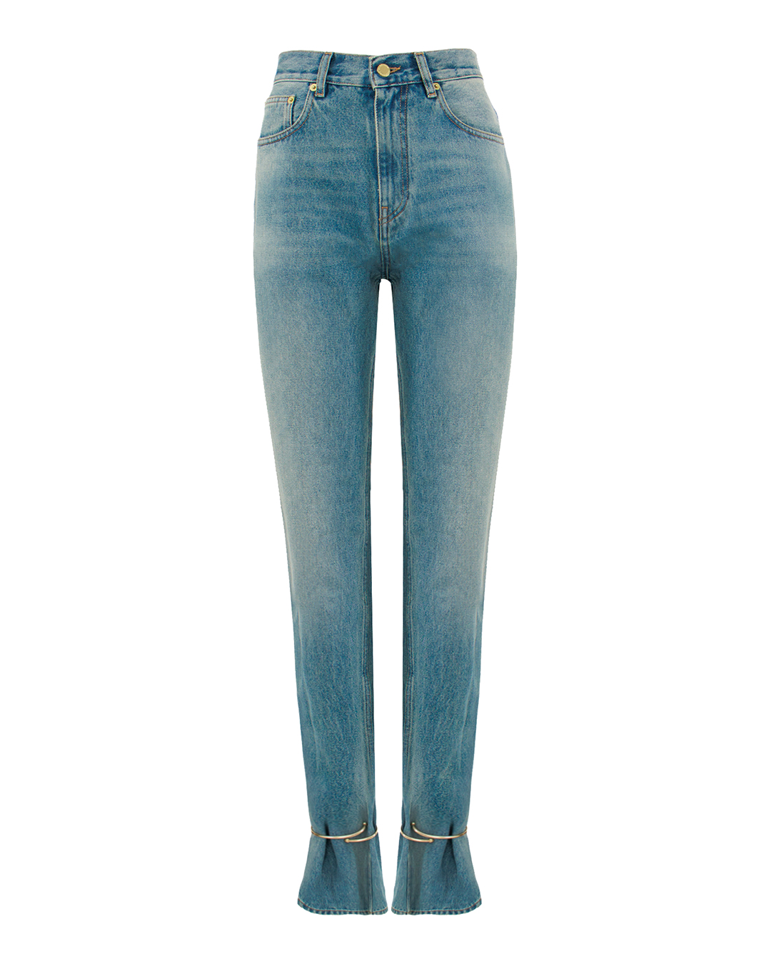 Эти джинсы вносят свежесть и трендовость в ваш гардероб благодаря своему выверенному дизайну. Изготовленные из качественного денима среднего синего оттенка с эффектом легкой потертости, они подчеркивают непринужденность и легкость. Прямой крой добавляет классический стиль, а зауженные книзу штанины делают образ современным и изящным. Средняя посадка на талии обеспечивает комфорт и создает визуально удлиненный силуэт, акцентируя внимание на фигуре. Детали отделки включают в себя классические пять карманов с контрастной отстрочкой, которая добавляет глубину и текстуру. Металлические заклепки и фурнитура золотистого оттенка гармонично дополняют общий вид, добавляя нотку изысканности. Подол с легкой необработанной каймой придает дополнительную текстурную составляющую и создает легкий эффект расслабленности, что актуально в современных трендах. Эти джинсы идеально сочетаются как с повседневной, так и с более элегантной одеждой, способствуя созданию стильных и уверенных образов на каждый день.
