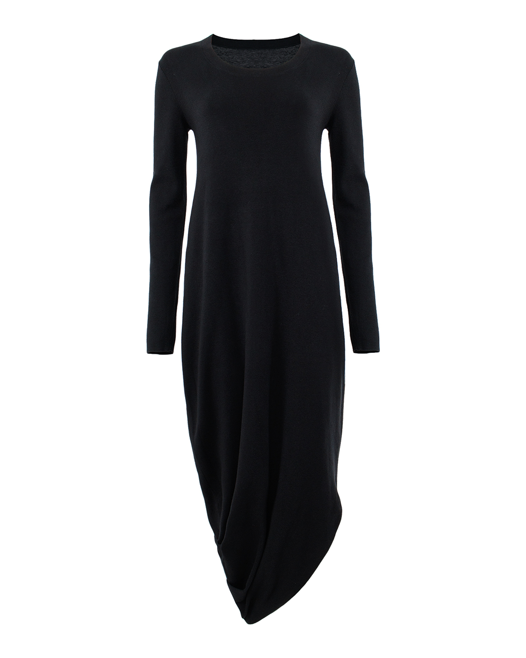 Это изысканное платье идеально сочетает в себе минимализм и современную элегантность. Высококачественная мягкая ткань обеспечивает комфорт и идеально облегает фигуру, подчеркивая плавные линии тела. Благодаря длинным рукавам и округлому вырезу, платье создаёт скромный и утончённый образ. Непринуждённый силуэт струящейся ткани обеспечивает свободу движений, сохраняя при этом изящество. Ассиметричный подол — это выразительная деталь, которая придаёт динамичность и утонченность. Эффектная драпировка добавляет текстуру и объём, создавая интересный визуальный акцент. Обработка швов выполнена безупречно, что подчеркивает внимание к деталям и гарантирует долговечность изделия. Это платье — идеальный выбор для тех, кто ценит стильную простоту и стремится выглядеть элегантно и современно в любых обстоятельствах.