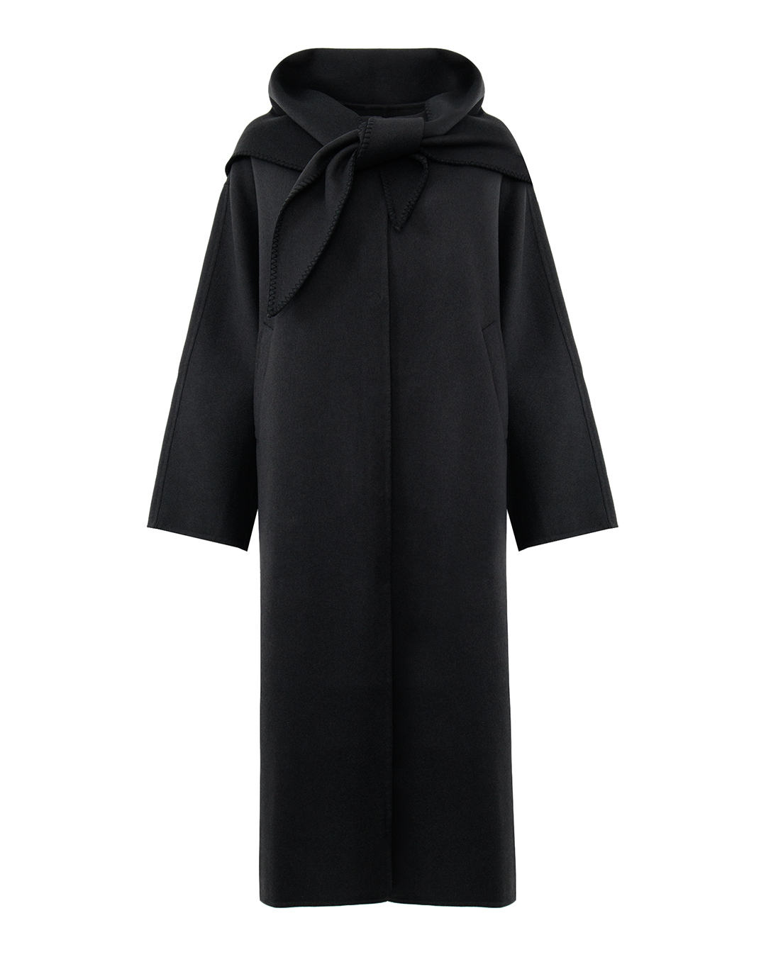 Это пальто представляет собой идеальный баланс минимализма и утончённого стиля, создавая элегантный и современный образ. Изделие выполнено из высококачественного плотного материала, который мягко облегает фигуру, обеспечивая комфорт и тепло. Конструкция с капюшоном добавляет нотку непринужденной элегантности, объединяя стиль и практичность. Искусный акцент на воротнике с декоративным бантом придаёт образу изысканность и утончённость, делая пальто выразительным и запоминающимся. Свободный крой и отсутствующие видимые застежки позволяют создать гладкий и непрерывный силуэт, подчёркивая чистоту линий. Карманы аккуратно встроены в боковые швы, что добавляет изделию функциональности, не перегружая его дизайн. Такое пальто станет неотъемлемой частью вашего гардероба, добавляя стилю свежесть и актуальность. Оно прекрасно сочетается как с повседневными, так и с более формальными ансамблями, отражая вашу индивидуальность и продуманный стиль.
