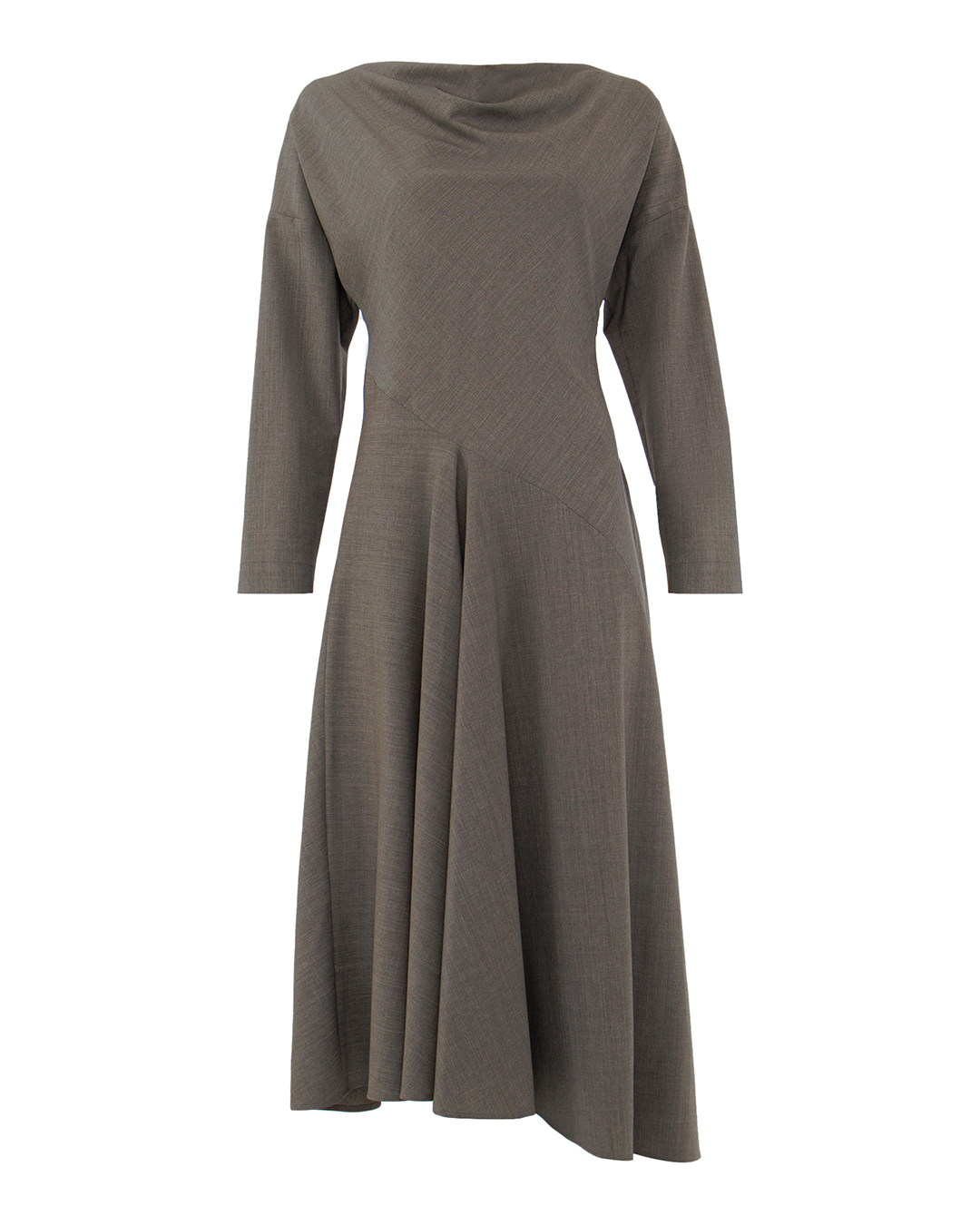Это платье — образец гармоничного сочетания классики и современности, воплощающее в себе утонченность и художественный креатив. Его уникальный крой с артистично драпированным вырезом добавляет динамики и визуальной глубины, создавая эффект мягкости и нежности. Ассиметричная линия талии придаёт образу оригинальность, плавно перетекая в свободно струящуюся юбку, которая добавляет чувственности и легкости. Длинные рукава акцентируют элегантность, подчеркивая изысканный стиль обладательницы. Материал высокого качества, мягкий на ощупь, обеспечивает комфорт и свободу движений, сохраняя при этом структуру платья. Невидимые швы и драпировки выполнены с исключительным мастерством, подчеркивая внимание к деталям. Это платье — идеальный выбор для тех, кто ценит индивидуальность и стремится создать выразительный, но в то же время элегантный образ для любого события.