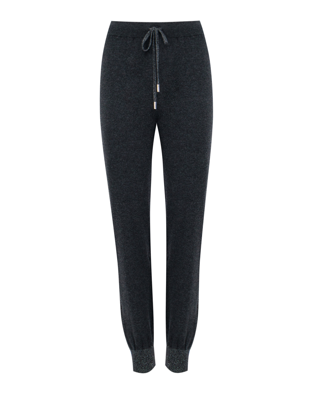 Эти брюки воплощают идеальный баланс между комфортом и стильной элегантностью. Изготовленные из мягкого и эластичного материала, они обеспечивают свободу движений и уют, оставаясь при этом невероятно стильными. Эластичный пояс с аккуратной завязкой не только практичен, но и добавляет брюкам лёгкую непринуждённость. Завязки с металлическими наконечниками служат изысканным акцентом, подчеркивающим внимание к деталям. Манжеты выполнены из широкой резинки, что обеспечивает удобную посадку на щиколотках и завершённый вид. Тёмный оттенок и лаконичный дизайн делают эти брюки универсальными для создания как домашних, так и уличных образов. Эти брюки станут незаменимой частью гардероба, предлагая комфорт и стиль в любом повседневном или расслабленном выходном образе.