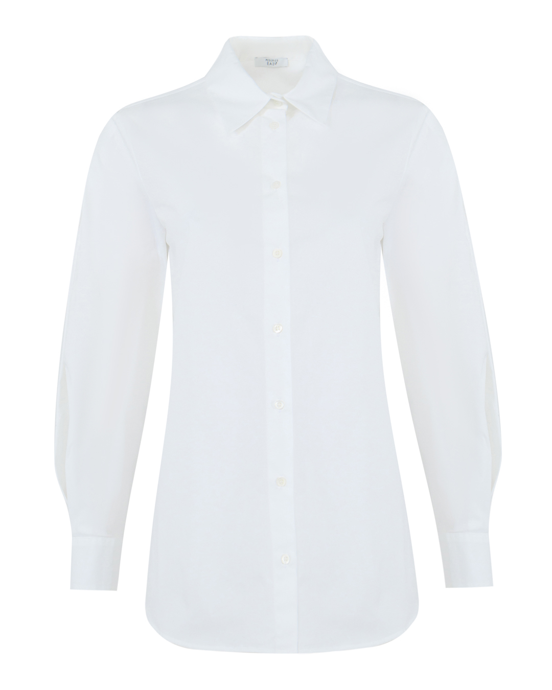 Эта блуза — классика с современным акцентом, воплощающая утонченную элегантность и изысканный стиль. Изготовленная из легкой хлопковой ткани, она обеспечивает комфорт и элегантность, идеально подходя как для деловых, так и для повседневных нарядов. Блуза выполнена в приталенном силуэте, который подчёркивает фигуру, создавая изящный и женственный образ. Классический отложной воротник добавляет утончённости и строгости, делая её безупречным выбором для различных ситуаций. Длинные рукава с манжетами на пуговицах акцентируют внимание на деталях, сохраняя при этом чистоту и простоту линий. Сквозная планка с аккуратными пуговицами придаёт завершённость и стиль, обеспечивая блузе классическое звучание. Эта блуза — универсальная вещь, которая станет основой для создания множества образов, легко сочетаясь с брюками, юбками или джинсами для различных случаев и настроений.