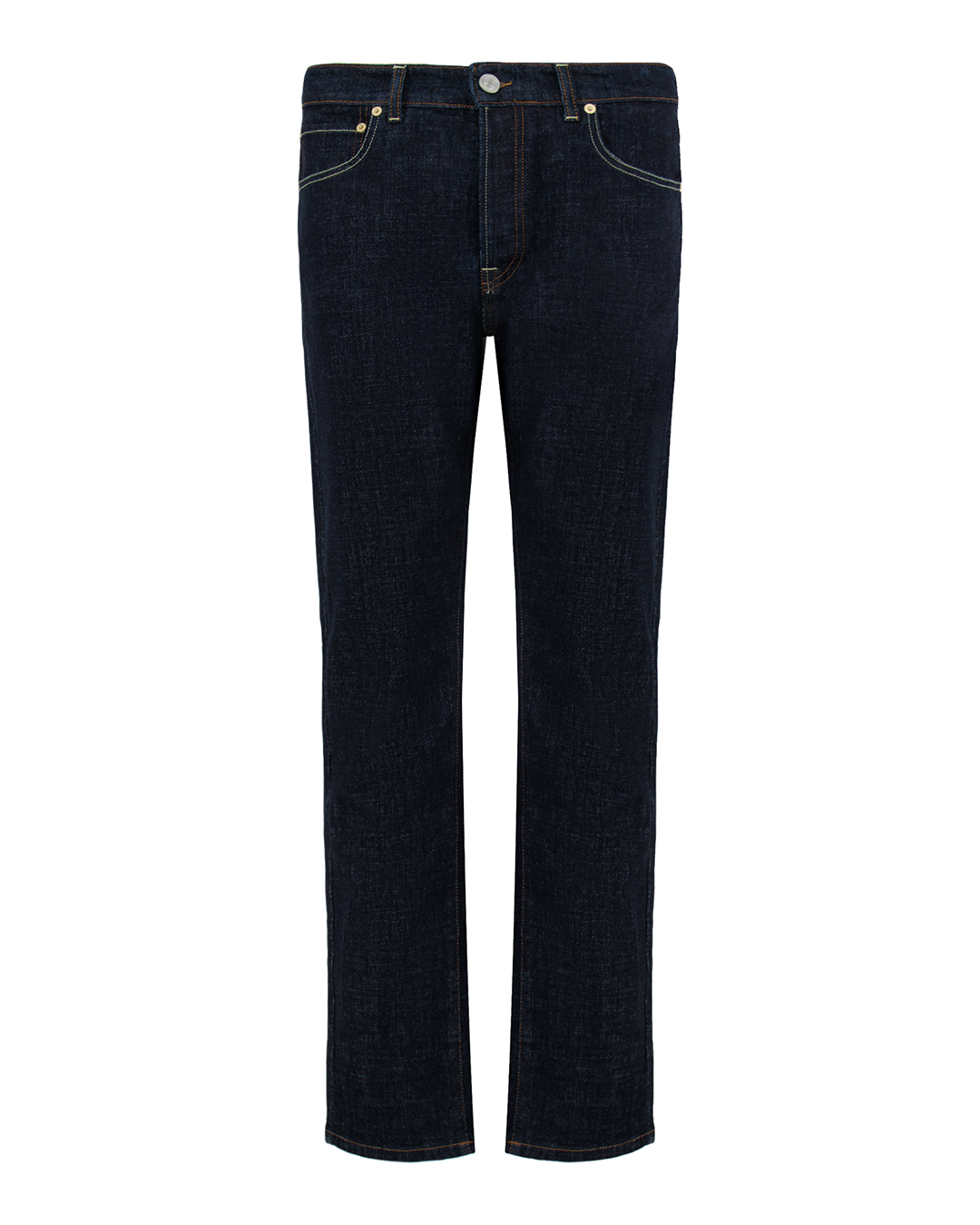 Эти джинсы олицетворяют современную классику, сочетающую в себе комфорт и стиль. Выполненные из плотного денима глубокого индиго, они вызывают ощущение непринужденной элегантности и индивидуальности. Фасон джинсов средней посадки делает их универсальным элементом гардероба, подходящим для любого случая. Прямой крой придает силуэту стройность и подчеркивает эстетику минимализма. Контрастная отстрочка золотистого оттенка добавляет визуальный акцент и выделяет ключевые линии кроя. Функциональные элементы, такие как пять карманов и металлическая фурнитура, придают модели изысканный, но повседневный вид. Завершает образ отделка в виде небольших потертостей, что придает джинсам живой характер и эффект естественной патинированности. Эти джинсы, без сомнения, станут основой для создания различных образов, от кэжуала до более изысканного стиля.