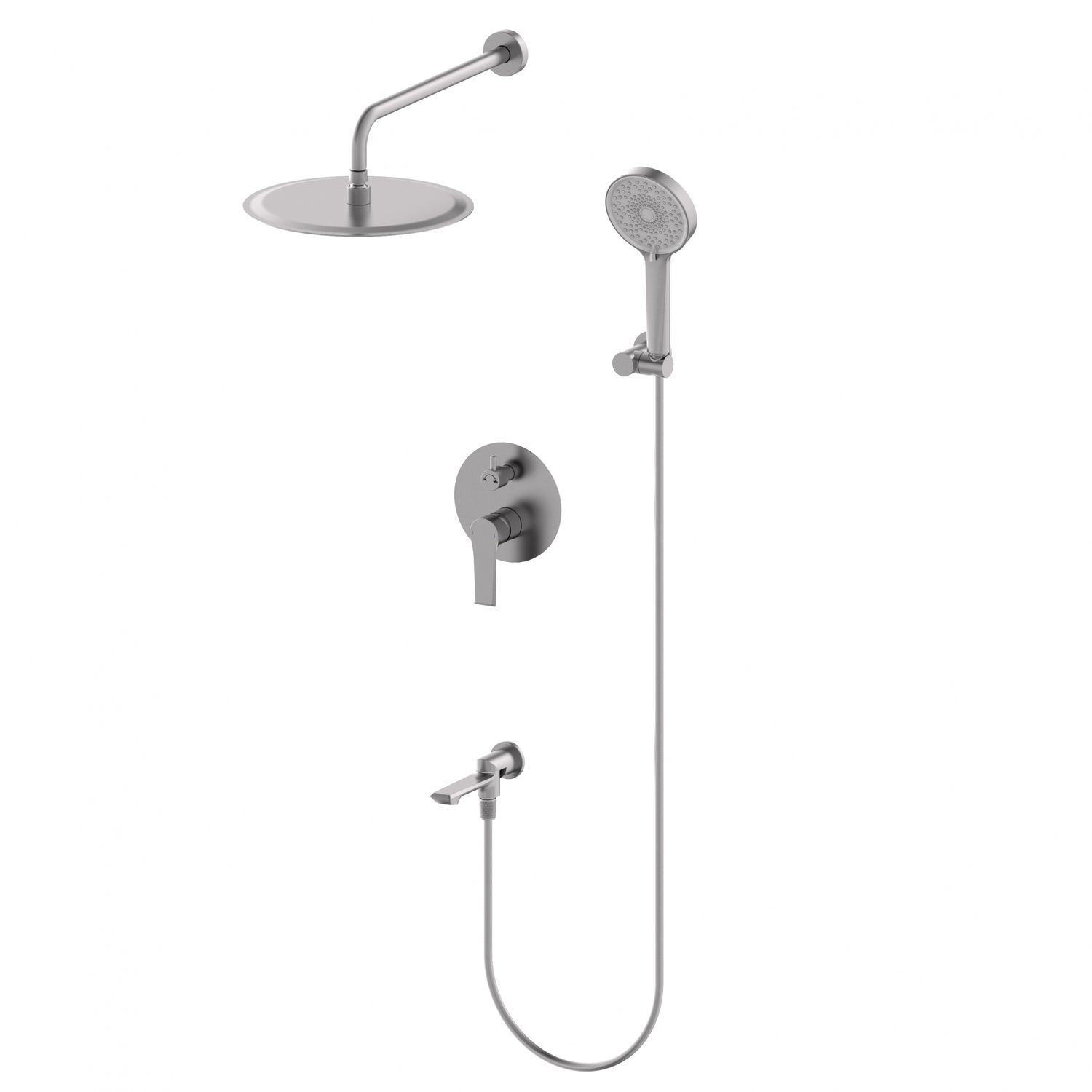 Душевая система встраиваемая WONZON & WOGHAND BRILLIANT, Темный графит (WW-88939079-BGM). Длина шланга: 1500 мм. Диаметр верхнего душа: 300 мм. Особенности: 1. Система против известковых отложений 2. Защита шланга от перекручивания 3. Защита от обратного потока.
