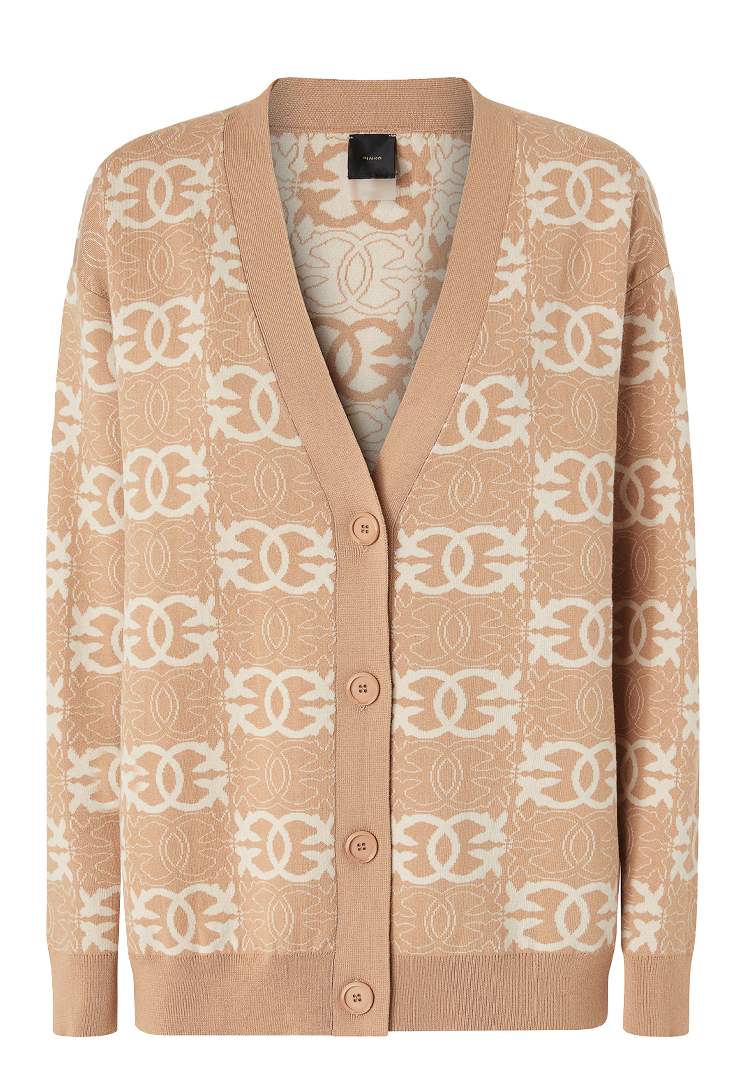 Классический кардиган с глубоким V-образным вырезом и застежкой на пуговицы от бренда Pinko — это элегантное дополнение к вашему гардеробу. Изготовленный из плотного гладкого трикотажа, он обеспечивает комфорт и износостойкость. Карамельный цвет кардигана добавляет теплоту и универсальность, позволяя легко сочетать его с другими элементами вашего гардероба. Декоративные элементы в виде повторяющегося логотипа Love Birds придают изделию изысканность и подчеркивают его принадлежность к известному бренду. Модель идеально подходит как для повседневной носки, так и для более формальных встреч. Глубокий V-образный вырез создает удлинённый силуэт и позволяет продемонстрировать выбранный под нее топ или рубашку. Такой кардиган станет незаменимой частью вашего повседневного образа.