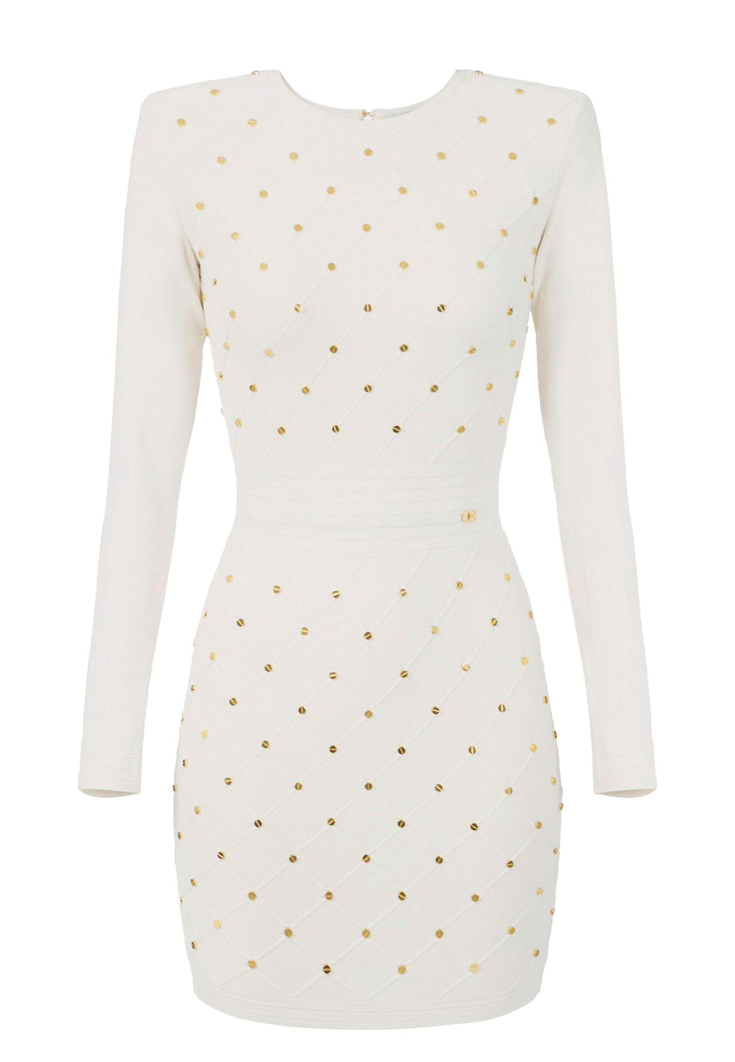 Трикотажное мини-платье от Elisabetta Franchi в изысканном молочном оттенке — это ода итальянской моде и образец классического стиля на все времена. Это изделие, рожденное в Италии, совмещает в себе непринужденную элегантность и городской шик, которые с легкостью находят свое место в вашем гардеробе. Струящиеся линии облегающего кроя подчеркивают силуэт, а длинные рукава и структурированные плечи с мягкими подплечниками придают дополнительный акцент. Особенную ноту добавляет роскошный мотив в ромбы с рельефными швами, который органично сочетается с декоративными элементами из золотистого металла. Пуговицы с логотипом бренда делают образ завершенным и стильным. Застежка-молния с декоративным пулером на спинке добавляет утилитарный элемент, не нарушая изысканного дизайна. Этот наряд, в котором роскошь и сдержанность нашли свое идеальное воплощение, станет незаменимым спутником в создании элегантного и выразительного образа.