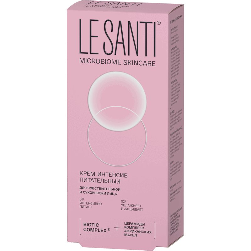 LE SANTI® Крем-интенсив питательный 40 мл Крем для питания и защиты кожи лица от потери влаги. 01/ обеспечивает питание и смягчение кожи, способствует её регенерации; 02/ глубоко увлажняет кожу, нормализует гидролипидный баланс; 03/ комплекс масел восстанавливает эластичность кожи и её защитный барьер.