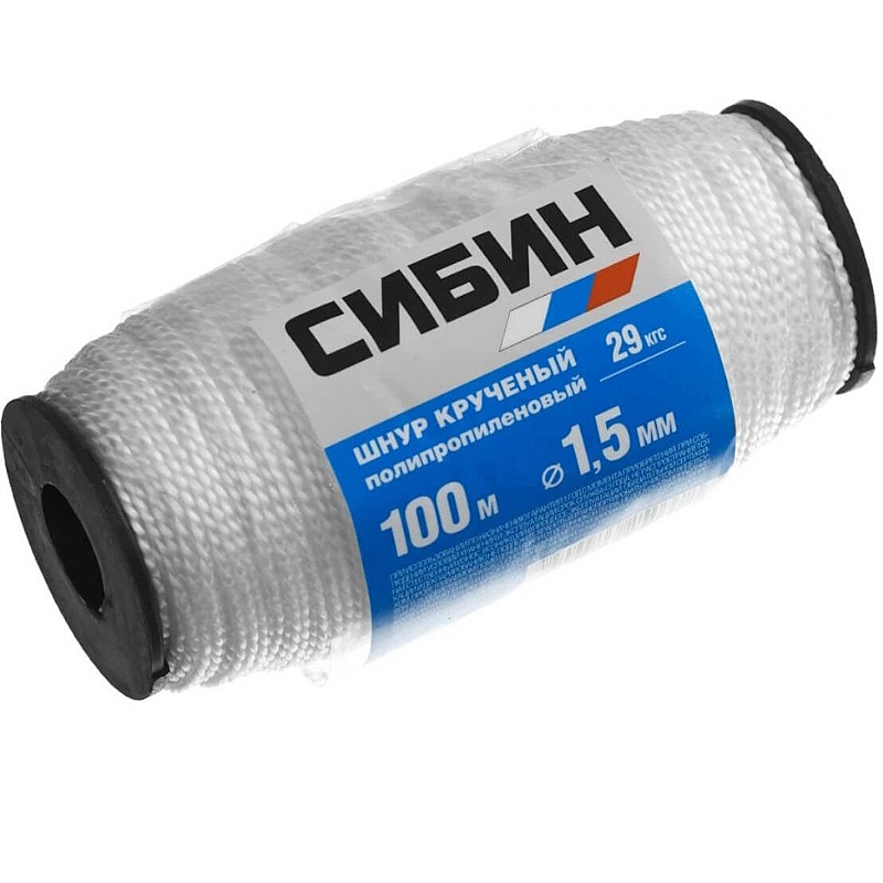 Шнур кручёный Сибин 50528 полипропиленовый 1,5мм/100м 29 кгс