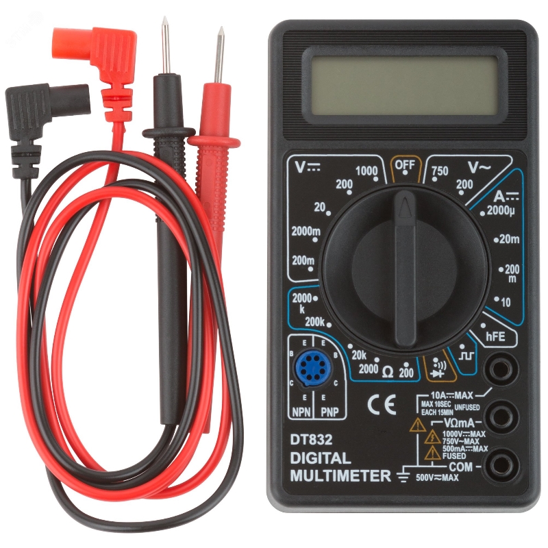 Мультиметр Курс представляет собой универсальный электронный измерительный прибор с широкими диапазонами измерений и набором полезных функцийПреимущества Мультиметр КУРС позволяет проводить высокоточные измерения широкого спектра электрических характеристик всевозможных электронных и электрических изделий и их компонентов Диапазон измерения напряжения постоянного тока - 0,1 мВ – 1000 В. Диапазон измерения величины постоянного тока - 1 мкА – 10 А Диапазон измерения сопротивления цепи постоянному току - 0,1 Ом – 2 МОм ЖК-дисплей с высотой знака 12,5 мм позволяет легко считывать данные Переключатель режимов/выключатель совмещен с переключателем диапазона измеряемого параметра, что упрощает эксплуатацию мультиметра Устройство подает звуковой сигнал в режиме проверки целостности электроцепи Индикация разряженной батареи вовремя показывает необходимость ее замены