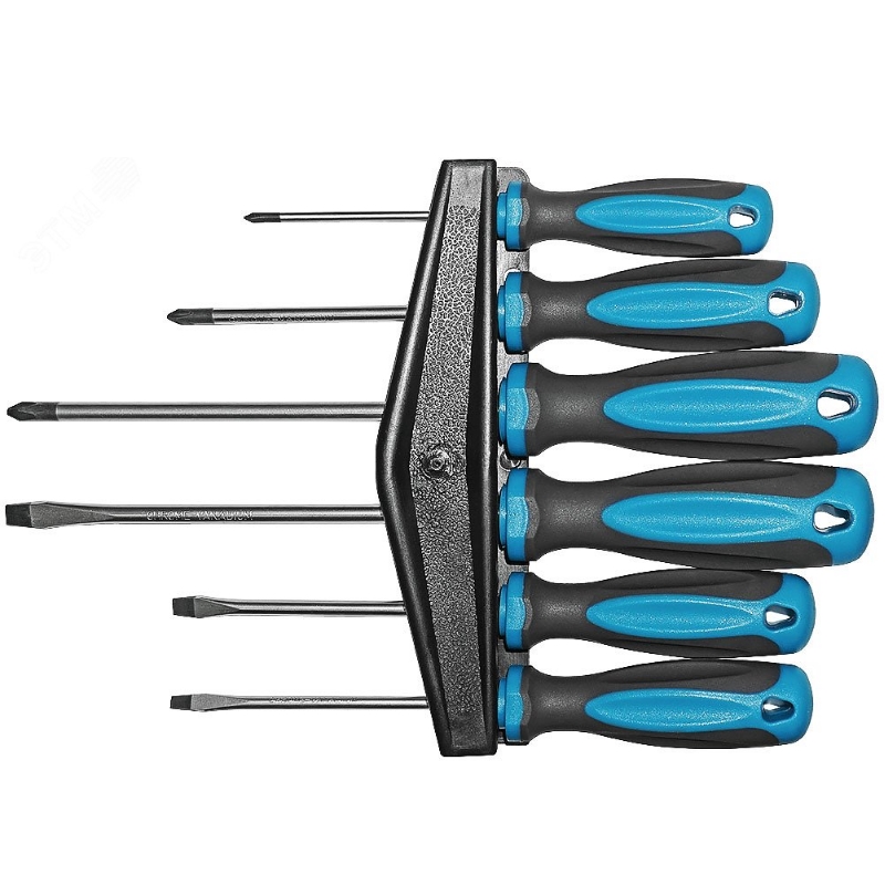Набор отверток Mos "Техник" 53900М, на держателе, CrV сталь, прорезиненные ручки, 6 шт., PH0,1,2 + SL4,5,6 Техник 53900М