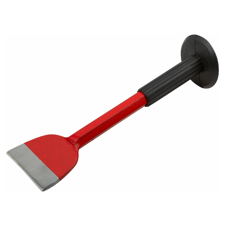 Зубило широкое с резиновым протектором Курс , 250х16х65 мм это специализированный инструмент, предназначенный для удаления старого покрытия, бетона, кирпича и камня, а также для рубки металла, демонтажа старой штукатурки и кирпичных кладок.Преимущества Уникальный резиновый протектор поглощает вибрации, возникающие при работе, защищая руку от травм и снижая утомляемость Предназначено для выполнения объёмных работ, позволяя удалять большое количество материала за короткий промежуток времени Повышенная твёрдость клинка позволяет успешно применять инструмент для рубки тяжёлых материалов, таких как кирпич и цемент Инструмент выполнен с учётом требований безопасности и удобством эксплуатации, что снижает риск возникновения несчастных случаев и повреждений рук Зубило способно выдержать значительное количество ударов без изменения первоначальных характеристик