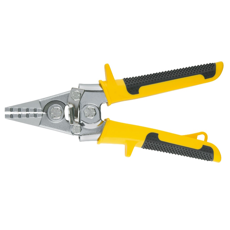 Плоскогубцы для гибки листового металла Fit , прорезиненные ручки, 230 мм предназначены для работы с листовым металлом (холоднокатанная сталь, медь, алюминий) толщиной до 0,8 мм при проведении кровельных работ, монтажа вентиляционных систем. Преимущества Широкая рабочая поверхность позволяет аккуратно сгибать металл под необходимым углом Двойной рычажный механизм увеличивает усилие во время работы Высокая прочность и износостойкость достигается за счет толщины губок (4 мм) и усиленной пружины Ручки имеют противоскользящие текстурированные резиновые вставки