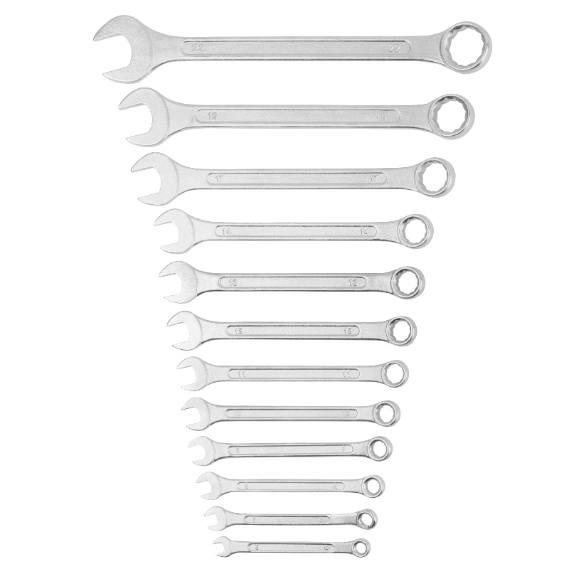 Ключи комбинированные Fit "Хард" , в нейлоновом чехле , набор 12 шт., 6-22 мм предназначены для работ с крепежными элементами. Преимущества Ключи проходят процесс закалки, повышающей твердость и износостойкость ключей Наклон рабочих частей в 15° повышает эффективность работы Накидная часть ключа выдерживает максимальные нагрузки и наиболее эффективна при первичном откручивании и окончательном затягивании Накидная часть с 12-гранным профилем прочно фиксируется на крепеже Рожковая часть ключа эффективна при работе в труднодоступных местах Эргономичная форма ключей обеспечивает надежный хват Хромированное покрытие предотвращает коррозию Нейлоновый чехол позволяет организованно хранить ключи