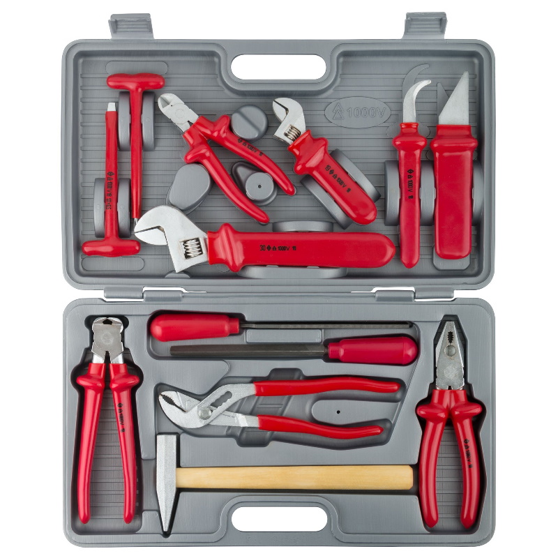 Набор инструмента диэлектрический "НИЗ" включает в себя все самые необходимые комплектующие для проведения ремонтных работ в действующих электроустановках напряжением до 1000В переменного и 1500В постоянного тока.Преимущества Инструменты пригодны для эксплуатации при температуре воздуха от –20 до +70 градусов В наборе 13 предметов Инструменты изготовлены из токоведущих сталей и покрыты электроизоляционным материалом Термообработка токоведущих частей, изготовленных из углеродистых и легированных сталей, обеспечивает высокую прочность, надежность и долговечность инструментов Материал изолирующего покрытия отверток — однослойный полистирол красного цвета, остальных инструментов — грунтовка и двухслойный пластизоль контрастных цветов - белого и красного (толщина каждого слоя около 2 мм) Инструменты оснащены защитными упорами, предотвращающими соскальзывание руки в рабочую зону