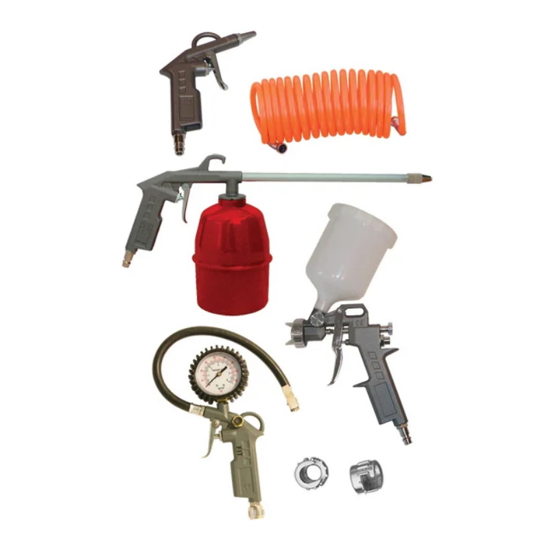 В наборе | краскопульт, обдувочный пистолет, моечный пистолет, пистолет для накачки шин, шланг |