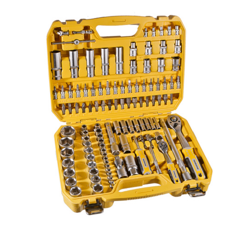 Набор инструментов для автомобиля Hanskonner , 108 предметов предназначен для ремонта и обслуживания автомобилей и других транспортных средств. Является незаменимым помощником для работы в гараже, автомастерской или сервисном центре.Преимущества Износостойкий материал изделий - CrV/ S2 Трехкомпонентные эргономичные рукоятки Надежные металлические замки и петли Ударопрочный кейс сохранит инструменты от повреждений Адаптеры для торцевых головок 1/2" и 1/4" в комплекте
