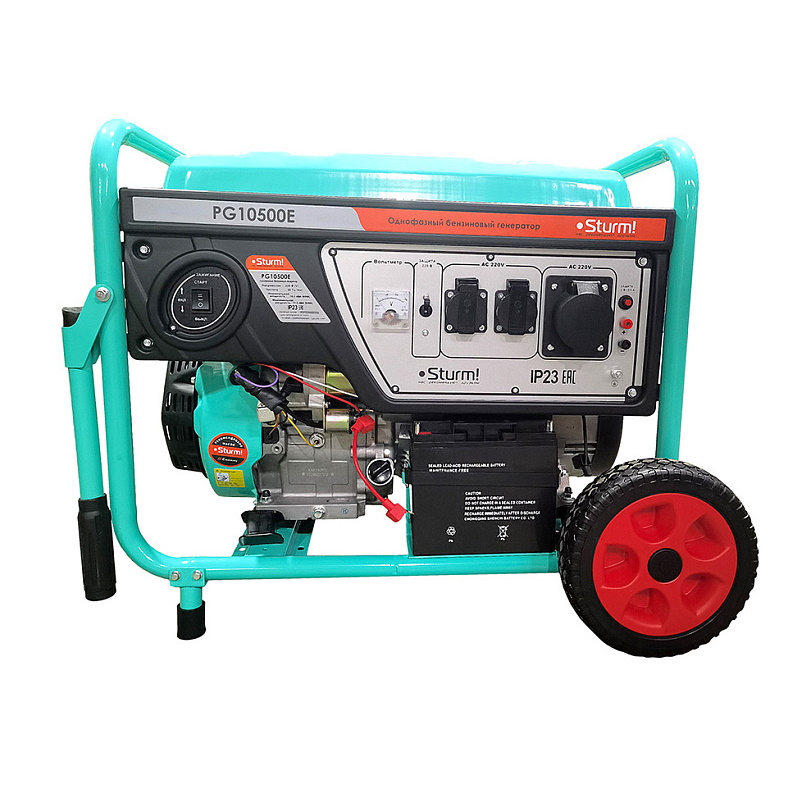 Бензогенератор Sturm , 11,5 кВт, электро стартер, АКБ, 94,7 кг, колеса, ручки PG10500E