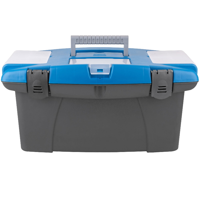 Ящик для инструментов Mos , 480х275х230 мм, с морозостойким замком - предназначен для хранения и транспортировки инструментов.Преимущества Подвижный лоток и три встроенных органайзера на крышке позволяют разместить необходимые инструменты и аксессуары Ящик оснащен двумя морозостойкими замками, функционирующих в любых погодных условиях Подойдет как профессионалу, так и домашнему мастеру: ящик позволяет держать инструменты и крепежные детали в одном месте и обеспечивает их сохранность