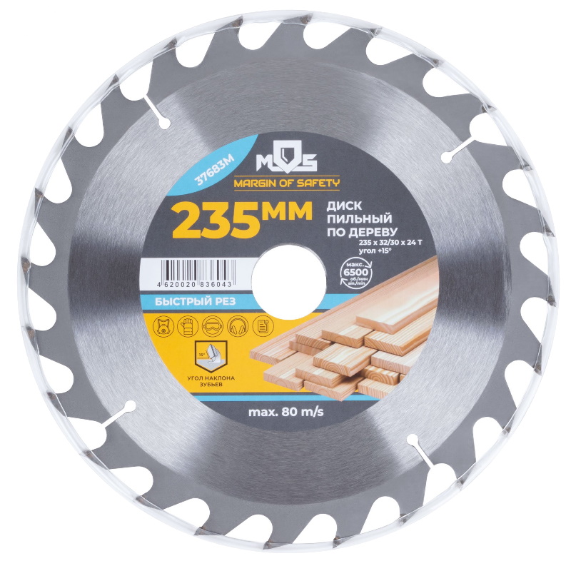 Диск пильный Mos для циркулярных пил, по дереву, 235x32x24T + кольцо 32/30 37683М