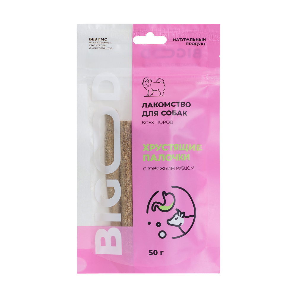 BIGOOD Лакомство Хрустящие палочки с говяжьим рубцом для собак, 50 гр.