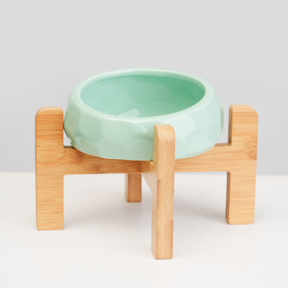 RURRI Миска керамическая на деревянной подставке, бирюзовая