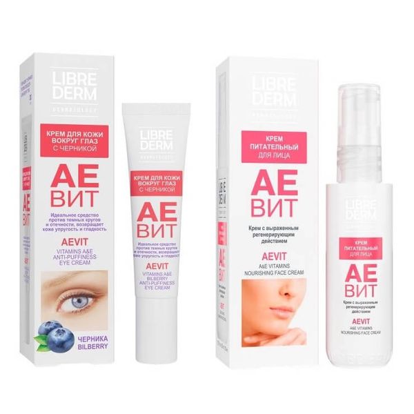Крем для кожи вокруг глаз против отеков с черникой Librederm/Либридерм Аевит 20мл + Крем для лица питательный Librederm/Либридерм Аевит 50мл Дина+ ООО