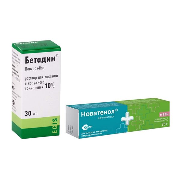 1X Бетадин раствор для местного и наружного применения 10% 30мл + 1X Новатенол мазь для наружного применения 5% 25г Egis