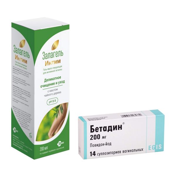 1X Бетадин суппозитории вагинальные 200мг 14шт + 1X Гель-мыло для интимной гигиены Залагель интим 200мл KERN PHARMA S.L.