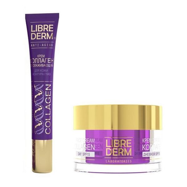 1X Крем дневной для восстановления сияния и ровного цвета кожи Librederm/Либридерм Коллаген SPF15 50мл + 1X Крем омолаживающий для кожи контура глаз Librederm/Либридерм Коллаген 20мл Дина+ ООО