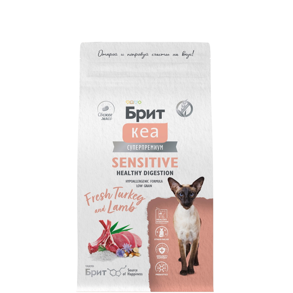 Brit Kea Sensitive Сухой корм для взрослых кошек с чувствительным пищеварением, с индейкой и ягненком, 1,5 кг