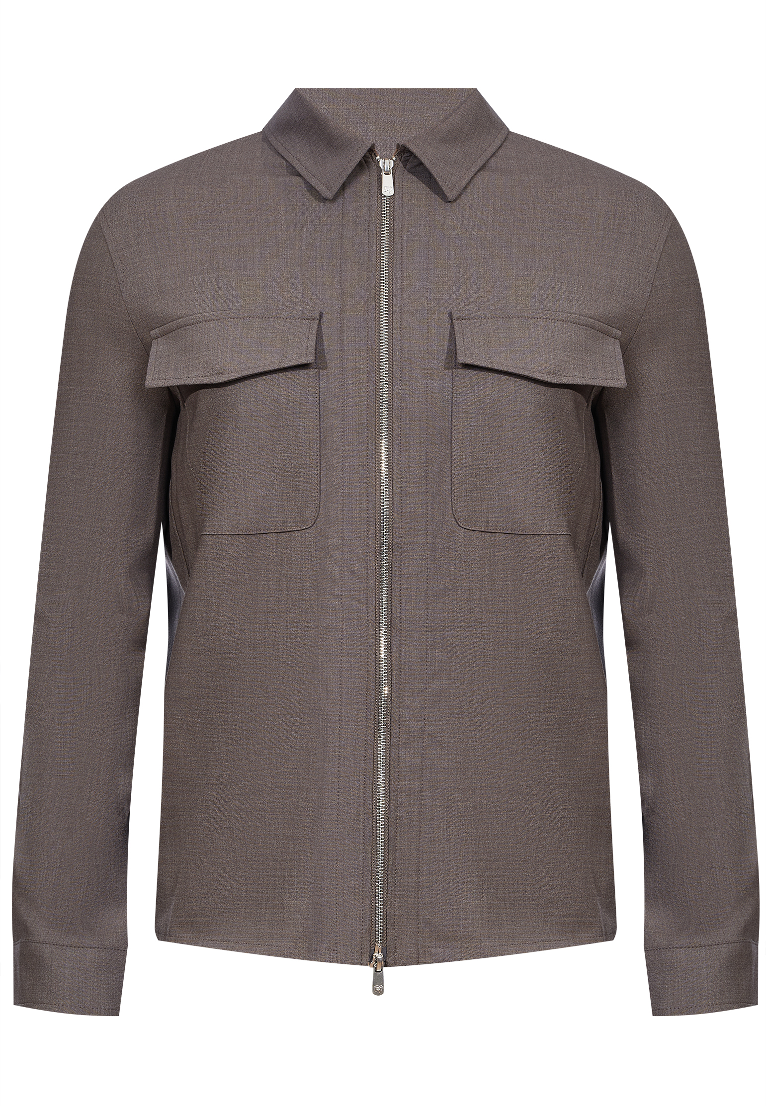 Мужская ветровка в коричневом цвете сочетает в себе классическую эстетику и современный комфорт. Модель выполнена из плотной шерсти с добавлением эластана, что обеспечивает ей благородную структуру, отличную форму и свободу движений. Удобный прямой крой подчеркивает строгость силуэта, а практичный хлопковый подклад создает приятные ощущения при носке. Функциональность модели подчеркивают прочная двусторонняя молния, позволяющая носить куртку на обе стороны, аккуратный отложной воротник и вместительные накладные карманы, которые добавляют образу динамики и практичности.