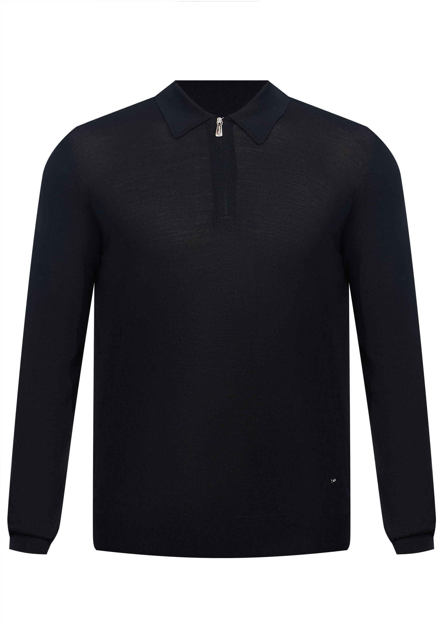 Угольно-черный пуловер в стиле поло представляет собой удачное сочетание классики и современности. Он изготовлен из тонкого трикотажа, который не только приятен на ощупь и мягко прилегает к телу, но и обеспечивает комфорт на протяжении всего дня. Такой материал отлично дышит, позволяя коже ощущать легкость и свободу. Модель оснащена отложным воротником, добавляющим изысканности и шарма, что делает его подходящим как для повседневной носки, так и для более официальных мероприятий. Эластичные края обеспечивают удобную и плотную посадку, подчеркивая фигуру и создавая аккуратный силуэт. Пуловер отличается выдержанным дизайном без лишних деталей, акцентирующим внимание на утонченность и элегантность модели.