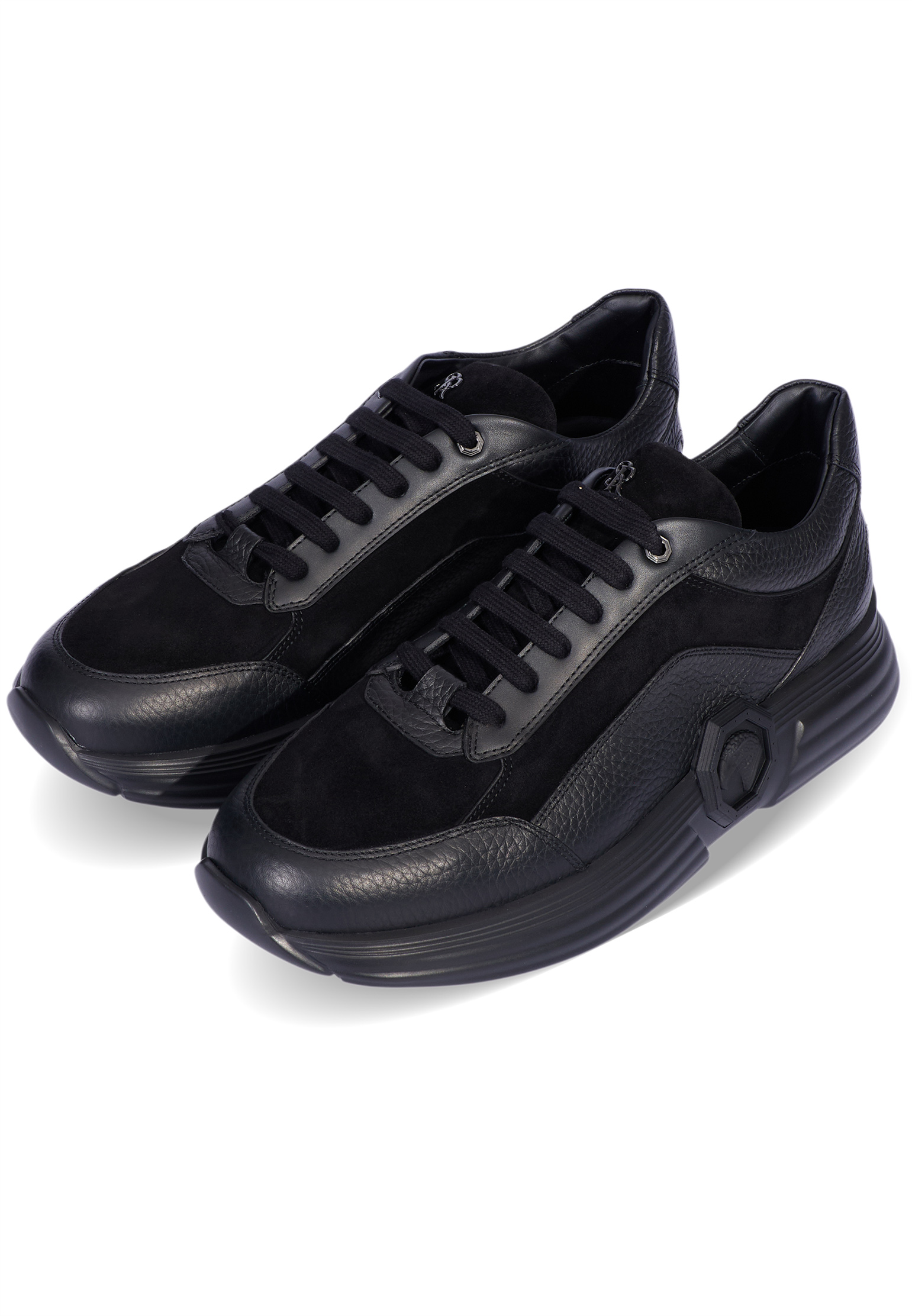 Кроссовки Stefano Ricci в универсальном черном цвете представляют собой идеальное сочетание стиля и высокого качества материалов. Изготовленные из замши, крупнозернистой и гладкой кожи, они обеспечивают износостойкость и комфорт при носке. Данная модель на шнуровке отличается продуманным дизайном: рельефная подошва не только улучшает сцепление с поверхностью, но и украшена фирменным рельефным логотипом сбоку, что добавляет особую привлекательность и узнаваемость. Язычок обуви декорирован изысканной монограммой Stefano Ricci, подчеркивающей премиальность бренда. Эти кроссовки легко интегрируются в любой гардероб, будь то повседневный или более формальный стиль, подчеркивая безупречный вкус и внимание к деталям владельца.
