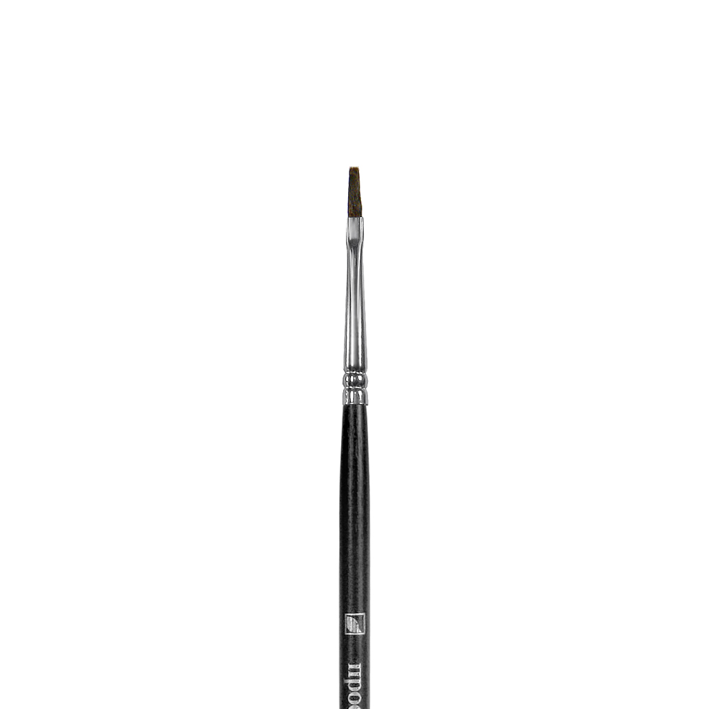 данные кисти производятся из натурального ворса белки. Каждая такая ворсинка имеет заостренный кончик, что обеспечивает равномерное стекание краски на поверхность работы. Кисти из этого материала достаточно упругие и эластичные. Пучок у кистей плоской формы. Номер кисти соответствует ширине пучка (в миллиметрах). Ворс кисти надежно крепится к черенку цельнотянутой обоймой. Ручки кистей удлиненные, покрыты черной эмалью.
