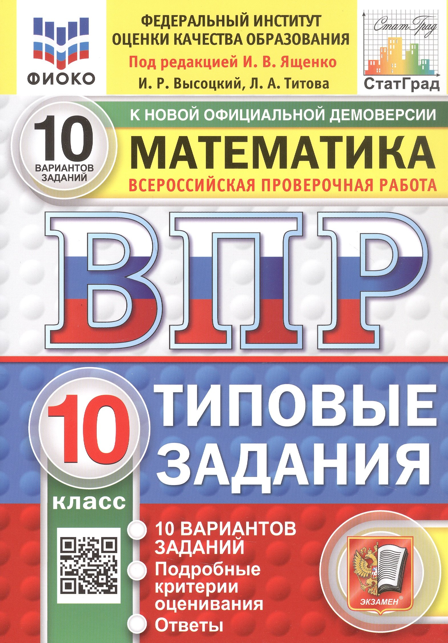 ВПР. ФИОКО. СтатГрад. Математика. 10 класс. Типовые задания. 10 вариантов заданий. ФГОС Новый; Экзамен, 2026