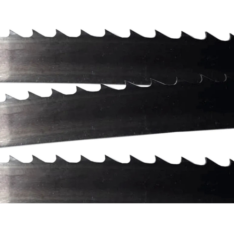 Ленточное полотно BELMASH 19x0,8-3TPI x 3345предназначено для установки на ленточнопильные станкиBELMASH WBS-410иBELMASH WBS-410/380Преимущества Полотно изготовлено из высококачественной из углеродистой стали - SK5 с жесткостью 62-64 HRC Зубья расположены с переменным шагом TPI, разводка стандартная (влево – вправо - прямой).Стандартный шаг зубьев упрощает процесс их повторной заточки Высокая прочность: полотно прошло процессы закалки, что обеспечивает его долговечность и устойчивость к износу Универсальность:полотно подходит для работы с твёрдой и мягкой древесиной Простота в использовании: полотно легко устанавливается на ленточнопильный станок и не требует сложного обслуживания