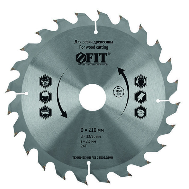 Диск пильный для циркулярных пил по дереву Fit , технический рез с гвоздями 210 х 32/30 х 24T 37710