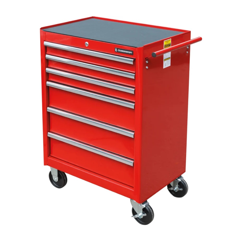 Тележка инструментальная Станкоимпорт BTD-270061CS, красная, на колесах, 6 ящиков