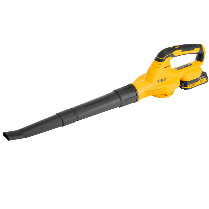 Воздуходувка аккумуляторная Denzel AB-500 59608, 60 м/с, 500 м3/ч, Li-Ion, 20В - с ее помощью можно очистить от листвы, травы и мусора дорожки, тропинки, различные площадки и труднодоступные места, а также собрать мусор в кучу. Надежный аккумулятор быстро заряжается и сохраняет полную емкость в течение всего срока службы. Воздуходувка оптимальна для бытового использования.Преимущества Полная комплектация — воздуходувка поставляется с аккумулятором и зарядным устройством, поэтому полностью готова к эксплуатации Фиксация клавиши пуска — ее не нужно удерживать во включенном положении, что повышает комфортность работы Универсальность — аккумулятор совместим со всеми инструментами единой платформы Denzel Power System 20V Безопасность — токопроводящие элементы надежно изолированы, инструменту присвоен класс защиты II Эргономичность — обрезиненная рукоятка обеспечивает надежный и комфортный хват Небольшой вес — масса воздуходувки с аккумулятором составляет 2.4 кг, поэтому ее удобно удерживать и направлять
