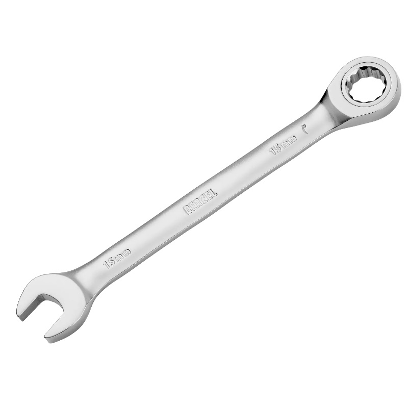 Ключ комбинированный трещоточный Denzel 14709, 15 мм, CrV, матовый хром