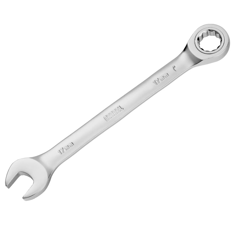 Ключ комбинированный трещоточный Denzel 14711, 17 мм, CrV, матовый хром