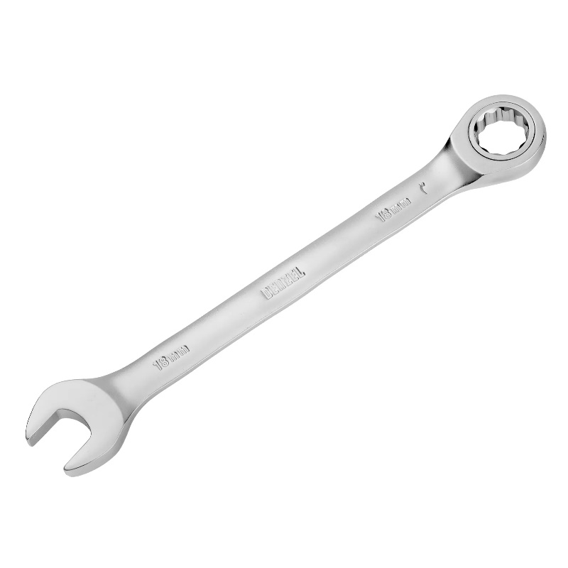 Ключ комбинированный трещоточный Denzel 14712, 18 мм, CrV, матовый хром