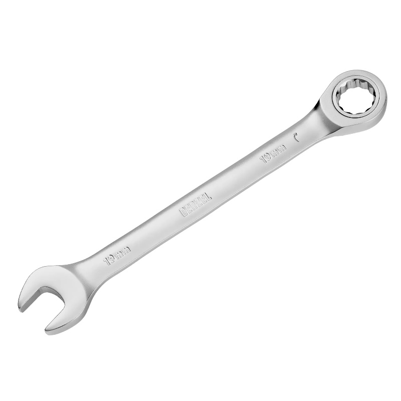 Ключ комбинированный трещоточный Denzel 14713, 19 мм, CrV, матовый хром